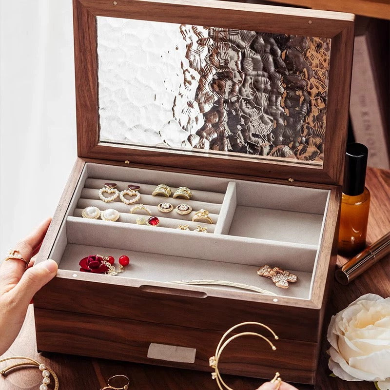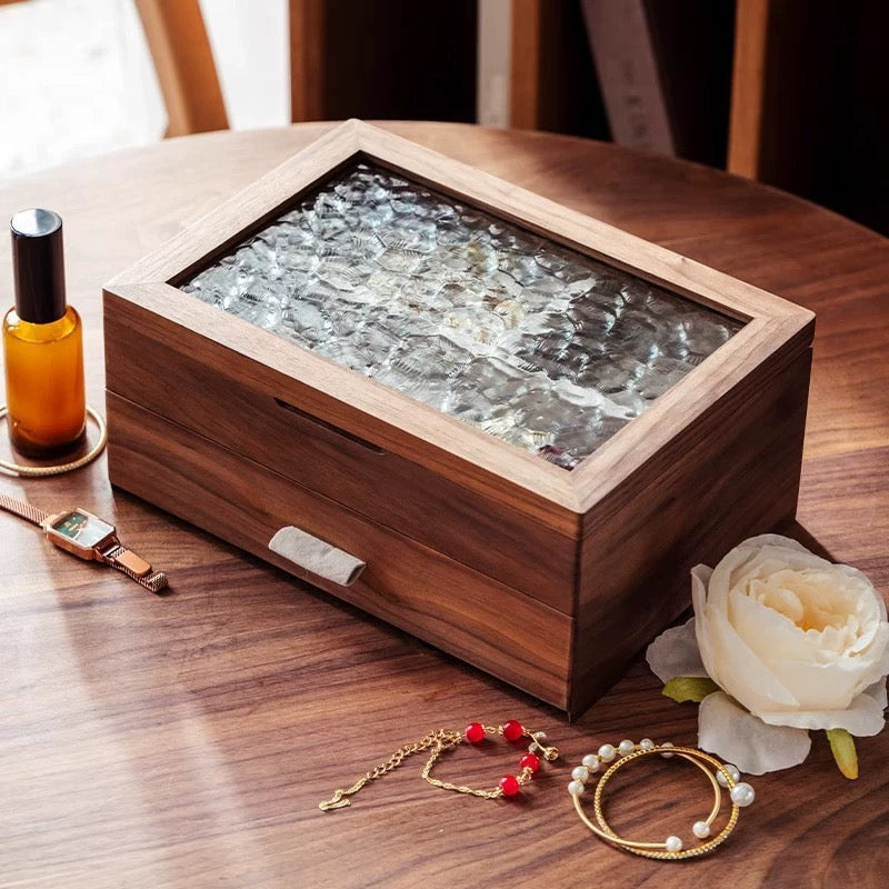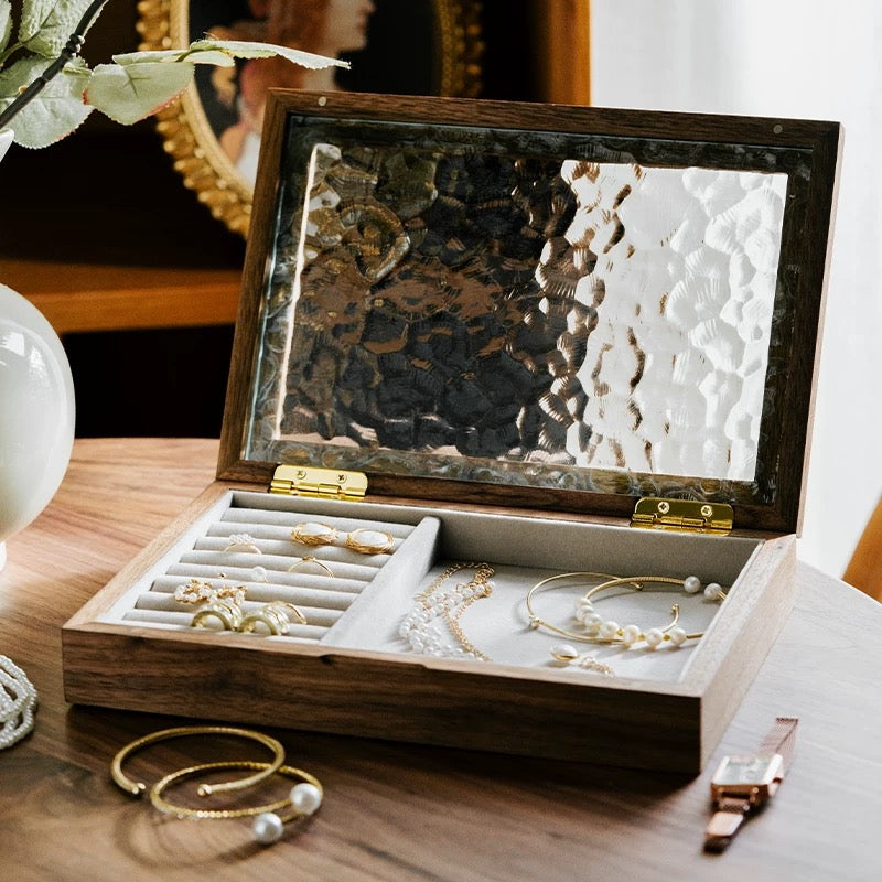 Elowen Schmuckkästchen aus Massivholz und strukturiertem Glas