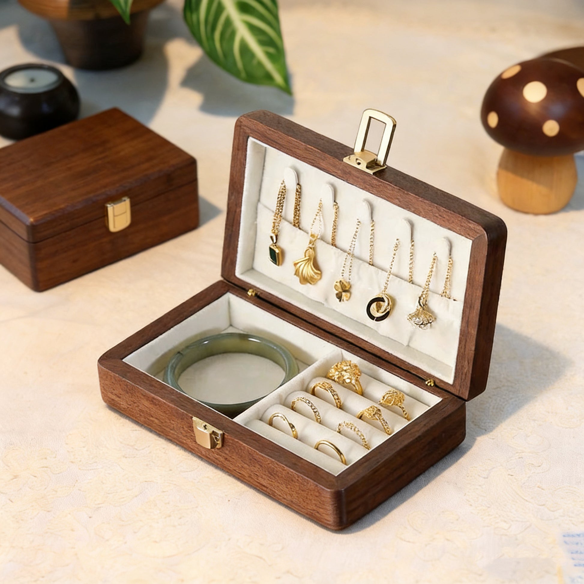 Your everyday pieces always have a place to return to. Thoughtful sections keep necklaces from tangling, rings from rubbing, and everything easy to put back.