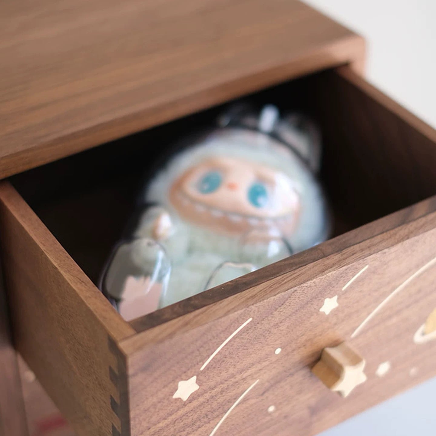 A compact wooden storage box designed for small everyday essentials—playful, practical, and quietly decorative.
